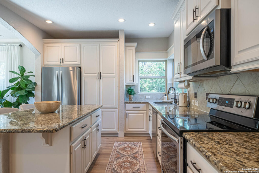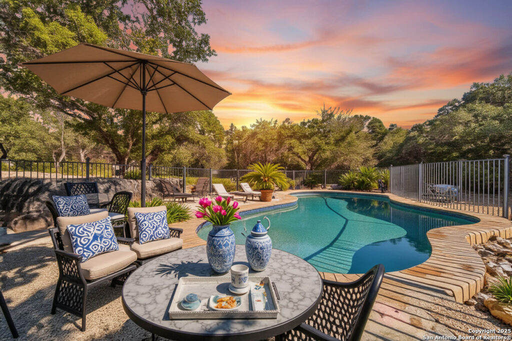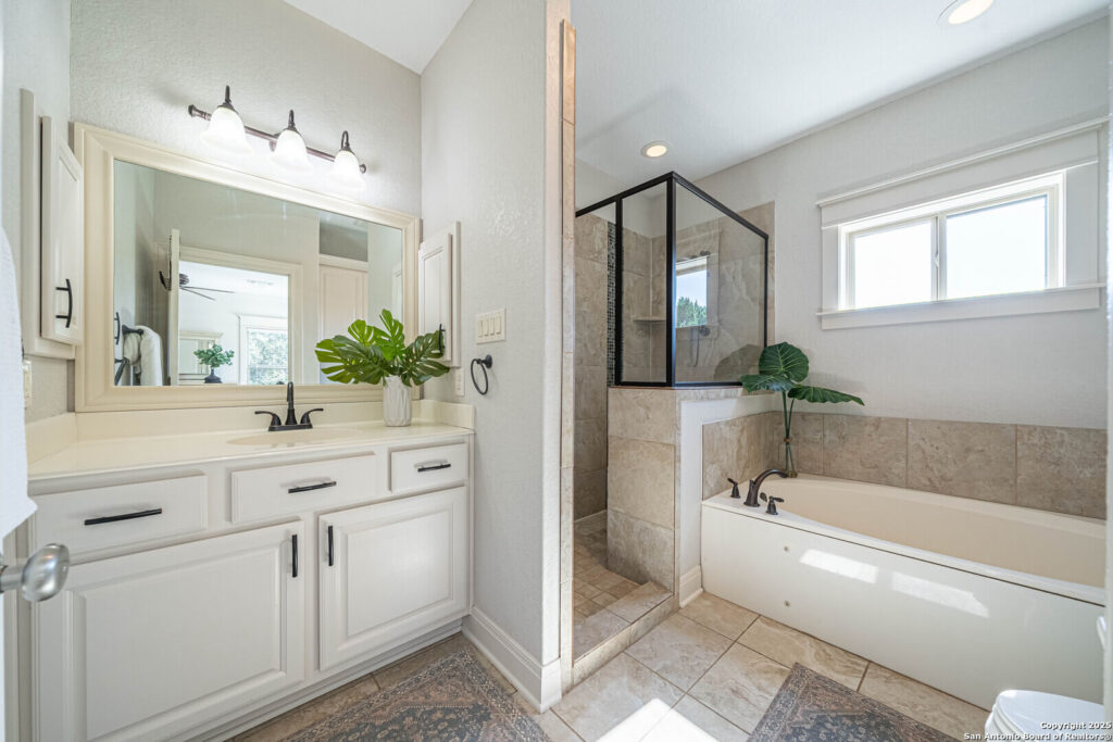 Charming Hill Country Retreat with Pool, No HOA – 11087 Mesquite Flats, Helotes, TX Welcome to this beautifully updated 2,656 sq ft home nestled in a highly desirable Helotes neighborhood-offering luxury, privacy, and no HOA restrictions. This inviting 4-bedroom, 2.5-bath residence features a guest suite on the main floor, a dedicated office, and a spacious game room-providing both function and flexibility for modern living. Step into the heart of the home where you’ll find a chef’s dream kitchen complete with granite countertops, a large central island, custom cabinets, and plenty of workspace to entertain or prepare meals with ease. Natural light pours through large windows, highlighting the home’s fresh finishes and open, airy layout. The primary suite offers a private sanctuary, complete with a spa-like ensuite bathroom featuring a separate walk-in shower, soaking tub, and a generous walk-in closet-perfect for unwinding in comfort and style. Outdoors, you’ll be amazed by the lush landscaping, mature trees, and private driveway leading to a detached garage and multiple auxiliary buildings-ideal for storage, hobbies, or workshop use. Relax in the in-ground pool and hot tub, surrounded by a serene, natural setting that feels like a private getaway. Whether you’re looking to entertain, work from home, or simply enjoy peace and privacy, this home checks every box. With timeless curb appeal, flexible spaces, and no HOA, this is a rare find in Helotes. Quick access to the Airport, La Cantera Mall and major employment hubs.