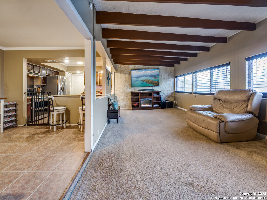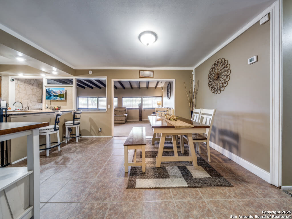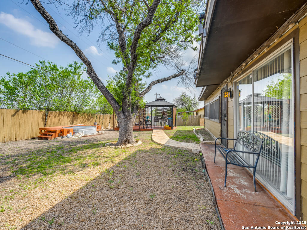 Beautifully maintained and move-in-ready, this home offers space, style, and smart potential just minutes from Lackland AFB. Featuring 3 bedrooms, 2 full bathrooms, and a extra family room, this Texas Hill Country-style home has a flexible layout ideal for families, multi-generational living, or investment opportunities. The main living area boasts high ceilings with exposed wood beams and oversized windows that flood the space with natural light. A second living area offers options for a home office, game room, or bonus room to suit your lifestyle. The kitchen includes a cozy breakfast nook with a bay window-perfect for casual meals or morning coffee. All bedrooms are generously sized for comfort and functionality, and the open layout allows for easy furniture flow. Step outside to a spacious enclosed patio with two gazebos-ideal for entertaining or relaxing year-round. The backyard is a blank canvas ready for gardening, play areas, or outdoor enhancements. Additional features include a 2-car garage with openers, a full security system for peace of mind, and a prime location near shopping, dining, and major employers. Priced to sell and loaded with potential, this home is a smart buy for first-time buyers, seasoned homeowners, or investors. Schedule your showing today and explore the possibilities!
